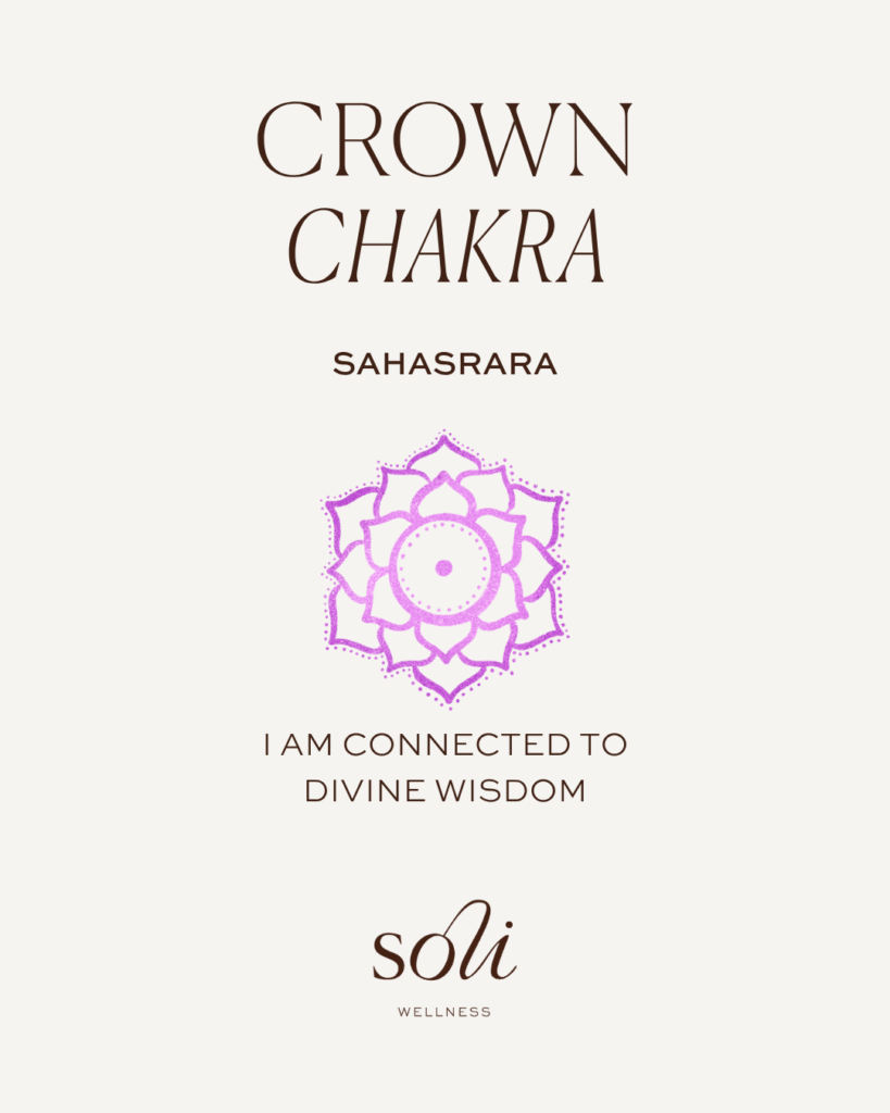 The Crown Chakra, known in Sanskrit as Sahasrara, is the seventh and highest chakra in the traditional energy system. It’s located at the top of the head and is associated with pure consciousness, spiritual connection, and the experience of oneness.